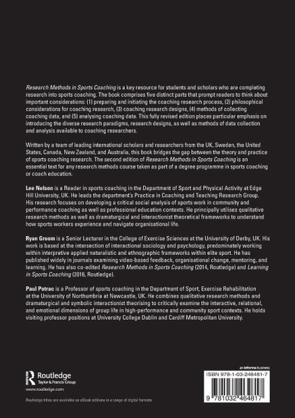 Research Methods in Sports Coaching is a key resource for students and scholars completing research into sports coaching. This revised edition places emphasis on introducing the diverse research paradigms, research designs, as well as methods of data collection and analysis available to researchers.