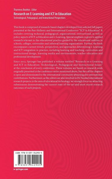 This book is comprised of research-based chapters developed from selected full papers presented at the Pan-Hellenic and International Conference "ICT in Education". It includes covering technical, pedagogical, organizational, instructional, as well as policy aspects of ICT in Education and e-Learning. Special emphasis is given to applied research relevant to the educational practice guided by the educational realities in schools, colleges, universities and informal learning organizations. Further, the book encompasses current trends, perspectives, and approaches determining e-Learning and ICT integration in practice, including learning and teaching, curriculum and instructional design, learning media and environments, teacher education and professional development.