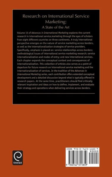 A truly international perspective emerges on the nature of service marketing across borders, as well as the internationalization strategies of service providers. This volume explores the research in international service marketing through the eyes of scholars from eight different countries on three continents.