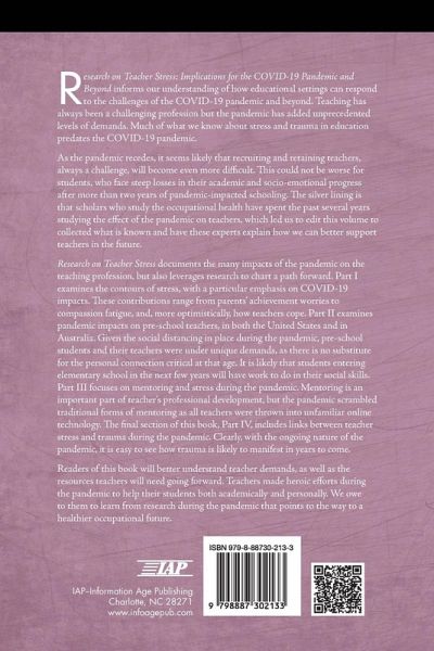 This volume informs our understanding of how educational settings can respond to the challenges of the COVID-19 pandemic and beyond. Teaching has always been a challenging profession but the pandemic has added unprecedented levels of demands. Much of what we know about stress and trauma in education predates the COVID-19 pandemic. As the pandemic recedes, it seems likely that recruiting and retaining teachers, always a challenge, will become even more difficult. This could not be worse for students, who face steep losses in their academic and socio-emotional progress after more than two years of pandemic-impacted schooling. The silver lining is that scholars who study the occupational health have spent the past several years studying the effect of the pandemic on teachers, which led us to edit this volume to collected what is known and have these experts explain how we can better support teachers in the future. This book documents the many impacts of the pandemic on the teaching profession, but also leverages research to chart a path forward. Part I examines the contours of stress, with a particular emphasis on COVID-19 impacts. These contributions range from parents' achievement worries to compassion fatigue, and, more optimistically, how teachers cope. Part II examines pandemic impacts on pre-school teachers, in both the U.S. and in Australia. Given the social distancing in place during the pandemic, pre-school students and their teachers were under unique demands, as there is no substitute for the personal connection critical at that age. It is likely that students entering elementary school in the next few years will have work to do in their social skills. Part III focuses on mentoring and stress during the pandemic. Mentoring is an important part of teacher's professional development, but the pandemic scrambled traditional forms of mentoring as all teachers were thrown into unfamiliar online technology. The final section of this book, Part IV, includes links between teacher stress and trauma during the pandemic. Clearly, with the ongoing nature of the pandemic, it is easy to see how trauma is likely to manifest in years to come. Readers of this book will better understand teacher demands, as well as the resources teachers will need going forward. Teachers made heroic efforts during the pandemic to help their students both academically and personally. We owe to them to learn from research during the pandemic that points to the way to a healthier occupational future.