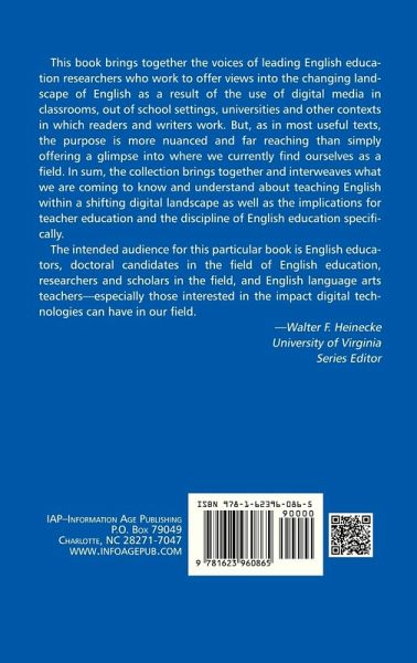 This book brings together the voices of leading English Education researchers who work to offer views into the changing landscape of English as a result of the use of digital media in classrooms, out of school settings, universities and other contexts in which readers and writers work. But, as in most useful texts, the purpose is more nuanced and far reaching than simply offering a glimpse into where we currently find ourselves as a field. In sum, the collection brings together and interweaves what we are coming to know and understand about teaching English within a shifting digital landscape as well as the implications for teacher education and the discipline of English Education specifically. The intended audience for this particular book is English educators, doctoral candidates in the field of English education, researchers and scholars in the field, and English language arts teachers - especially those interested in the impact digital technologies can have in our field.