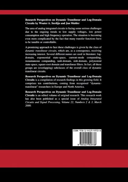 Research Perspectives on Dynamic Translinear and Log-Domain Circuits is a compilation of research findings in this growing field. It comprises ten contributions, coming from recognized `dynamic-translinear' researchers in Europe and North America.