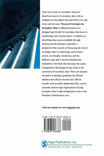 This book describes and explains approaches to the evaluation and analysis of secondary data in criminological research. The book focuses on secondary data originating in surveys, information collected by organizations, and data sets available from archives. Although the techniques described are common to the social sciences, the examples and applications are specific to criminology and criminal justice.
