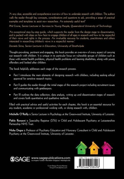 Introduction: Setting the Context PART ONE: PRELIMINARY ISSUES Cultural and Diversity Issues Ethics in Child Research Children¿s Capacity to Make Decisions PART TWO: STARTING A RESEARCH PROJECT WITH CHILDREN Planning to Do Research with Children Getting Started in Research with Children Children with Specific Characteristics Recruiting Children and Families: Communicating with Gatekeepers, Parents and Children PART THREE: PRACTICAL ISSUES Choosing a Method for Your Research Quantitative Methods of Data Collection and Analysis Qualitative Methods of Data Collection and Analysis Writing-up and Dissemination Answers to the Activities Glossary References Index