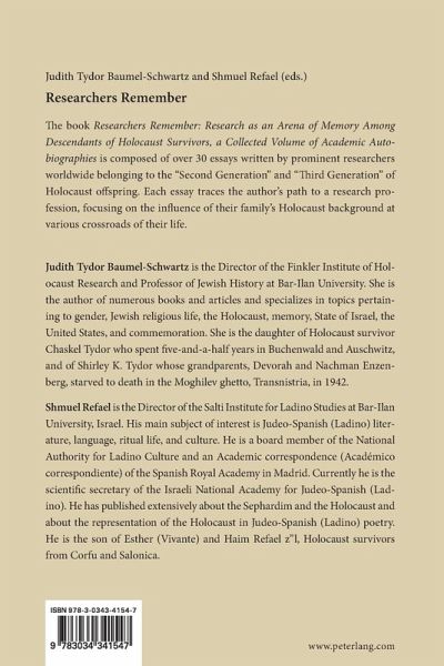The book Researchers Remember: Research as an Arena of Memory Among Descendants of Holocaust Survivors, a Collected Volume of Academic Auto-biographies is composed of over 30 essays written by prominent researchers worldwide belonging to the "Second Generation" and " Third Generation" of Holocaust offspring. Each essay traces the author's path to a research profession, focusing on the influence of their family's Holocaust background at various crossroads of their life.