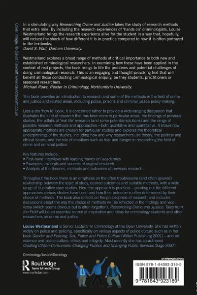 This book provides a practical introduction to crime and justice research, as well as presenting key research philosophies and discussing the potential problems and pitfalls of a wide range of research methods. As such, it is essential reading for criminology students and other researchers of crime and justice.