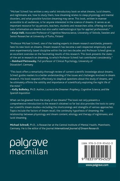 What can be gleaned from the study of our dreams? With research methods in mind-including the shortcomings and strengths of various strategies-the book presents a comprehensive introduction to the research obtained so far. Topics include the factors of dream recall; the continuity hypothesis of dreaming; the relationship between physiology and dream content; etiology and therapy of nightmares; and lucid dreaming. The book not only presents a comprehensive introduction to the research obtained so far but also provide the tools to carry our scientific dream studies-including the shortcomings and strengths of various approaches.