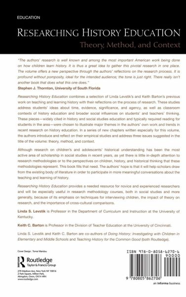 "The authors' research is well known and among the most important American works being done on how children learn history. It is thus a great idea to gather this pivotal research in one place. The volume offers a new perspective through the authors' reflections on the research process. It is profound without pomposity, ideal for the intended audience; the tone is just right. There really isn't another book that does what this one does." Stephen J. Thornton, University of South Florida Researching History Education combines a selection of Linda Levstik's and Keith Barton's previous work on teaching and learning history with their reflections on the process of research. These studies address students' ideas about time, evidence, significance, and agency, as well as classroom contexts of history education and broader social influences on students' and teacher's thinking. These pieces-widely cited in history and social studies education and typically required reading for students in the area-were chosen to illustrate major themes in the authors' own work and trends in recent research on history education. In a series of new chapters written especially for this volume, the authors introduce and reflect on their empirical studies and address three issues suggested in the title of the volume: theory, method, and context. Although research on children's and adolescents' historical understanding has been the most active area of scholarship in social studies in recent years, as yet there is little in-depth attention to research methodologies or to the perspectives on children, history, and historical thinking that these methodologies represent. This book fills that need. The authors' hope is that it will help scholars draw from the existing body of literature in order to participate in more meaningful conversations about the teaching and learning of history. Researching History Education provides a needed resource for novice and experienced researchers and will be especially useful in research methodology courses, both in social studies and more generally, because of its emphasis on techniques for interviewing children, the impact of theory on research, and the importance of cross-cultural comparisons.