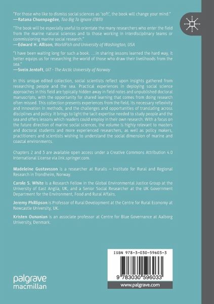 In this unique edited collection, social scientists reflect upon and openly share insights gathered from researching people and the sea. Understanding how people use, relate to and interact with coastal and marine environments has never been more important, with social scientists having an increasingly vital contribution to make. Yet practical experiences in deploying social science approaches in this field are typically hidden away in field notes and unpublished doctoral manuscripts, with the opportunity for shared learning that comes from doing research often missed. There is a need for reflection on how social science knowledge is produced.