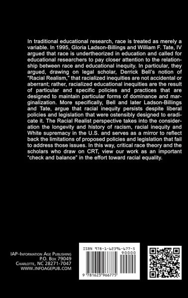 A volume in Education Policy in Practice: Critical Cultural Studies Series Editors Edmund T. Hamann, University of Nebraska-Lincoln and Rodney Hopson, George Mason University In traditional educational research, race is treated as merely a variable. In 1995, Gloria Ladson-Billings and William F. Tate, IV argued that race is under-theorized in education and called for educational researchers to pay closer attention to the relationship between race and educational inequity (Ladson-Billings and Tate, 1995). In particular, they argued, drawing on legal scholar, Derrick Bell's notion of Racial Realism (Bell, 1995), that racialized inequities are not accidental or aberrant; rather, racialized educational inequities are the result of particular and specific policies and practices that are designed to maintain particular forms of dominance and marginalization. More specifically, Bell and later Ladson-Billings and Tate, argue that racial inequity persists despite liberal policies and legislation that were ostensibly designed to eradicate it. The Racial Realist perspective takes into the consideration the longevity and history of racism, racial inequity and White supremacy in the U.S. and serves as a mirror to reflect back the limitations of proposed policies and legislation that fail to address those issues. In this way, Critical Race Theory and the scholars who draw on CRT, view our work as an important "check and balance" in the effort toward racial equality.