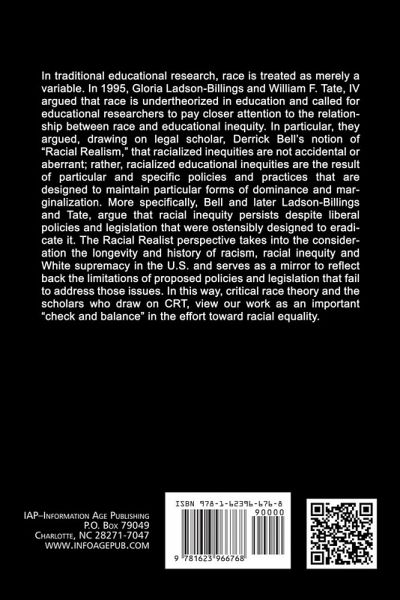 A volume in Education Policy in Practice: Critical Cultural Studies Series Editors Edmund T. Hamann, University of Nebraska-Lincoln and Rodney Hopson, George Mason University In traditional educational research, race is treated as merely a variable. In 1995, Gloria Ladson-Billings and William F. Tate, IV argued that race is under-theorized in education and called for educational researchers to pay closer attention to the relationship between race and educational inequity (Ladson-Billings and Tate, 1995). In particular, they argued, drawing on legal scholar, Derrick Bell's notion of Racial Realism (Bell, 1995), that racialized inequities are not accidental or aberrant; rather, racialized educational inequities are the result of particular and specific policies and practices that are designed to maintain particular forms of dominance and marginalization. More specifically, Bell and later Ladson-Billings and Tate, argue that racial inequity persists despite liberal policies and legislation that were ostensibly designed to eradicate it. The Racial Realist perspective takes into the consideration the longevity and history of racism, racial inequity and White supremacy in the U.S. and serves as a mirror to reflect back the limitations of proposed policies and legislation that fail to address those issues. In this way, Critical Race Theory and the scholars who draw on CRT, view our work as an important "check and balance" in the effort toward racial equality.