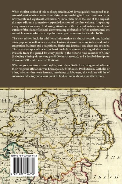 When the first edition of this book appeared in 2005 it was quickly recognised as an essential work of reference for family historians researching Ulster ancestors in the seventeenth and eighteenth centuries. It filled an important gap in providing reliable guidance on sources for perhaps the most critical period in understanding a family's links with the north of Ireland. This is territory where some family historians fear to tread. But they need not. This guide opens up avenues for research; drawing attention to the riches of archives inside and outside of the island of Ireland, demonstrating the benefit of often undervalued, rare, even quite unconventional, yet accessible sources - if you know where to look - which can help document your ancestors back to the 1600s. At more than twice the size of the original, this new edition is a massively expanded version of the first volume. It includes additional information on church records and landed estate papers, as well as new chapters looking at records relating to law and order, emigration, business and occupations, diaries and journals, and clubs and societies. The extensive appendices to the book include a summary breakdown of the sources available from this period for every parish in the historic nine counties of Ulster (including a listing of surviving pre-1800 church records); a detailed description of around 350 collections of seventeenth- and eighteenth-century landed estate papers; and a listing of more than 500 towns and villages in Ulster with parish locations. Whether your ancestors are of English, Scottish or Gaelic Irish background, whether their religious affiliation was Episcopalian, Methodist, Presbyterian, Catholic or other, whether they were farmers, merchants or labourers, this volume will be of enormous value to anyone wishing to find out more about their Ulster roots.
