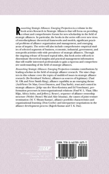 A volume in Research in Strategic Alliances Series Editor T. K. Das, City University of New York Researching Strategic Alliances: Emerging Perspectives is a volume in the book series Research in Strategic Alliances that will focus on providing a robust and comprehensive forum for new scholarship in the field of strategic alliances. In particular, the books in the series will cover new views of interdisciplinary theoretical frameworks and models, significant practical problems of alliance organization and management, and emerging areas of inquiry. The series will also include comprehensive empirical studies of selected segments of business, economic, industrial, government, and non-profit activities with wide prevalence of strategic alliances. Through the ongoing release of focused topical titles, this book series will seek to disseminate theoretical insights and practical management information that will enable interested professionals to gain a rigorous and comprehensive understanding of the field of strategic alliances. Researching Strategic Alliances: Emerging Perspectives contains contributions by leading scholars in the field of strategic alliance research. The nine chapters in this volume cover the topics of multilevel issues in strategic alliance research (Bo Bernhard Nielsen), alliances as sources of legitimacy (Paul M. Olk and Peter Smith Ring), alliance capability as an emerging theme (Ard-Pieter De Man, Geert Duysters, and Tina Saebi), trust and control in strategic alliances (Jeltje van der Meer-Kooistra and Ed Vosselman), pre-formation processes in interorganizational relations (Paul W. L. Vlaar, Elko Klijn, Africa Ariño, and Jeffrey J. Reuer), sequence of alliance ownership structure (Weilei (Stone) Shi and Akie Iriyama), the causes of joint venture termination (M. V. Shyam Kumar), alliance portfolio characteristics and organizational learning (Don Goeltz) and interpartner negotiations in the alliance development process (Rajesh Kumar and T. K. Das).