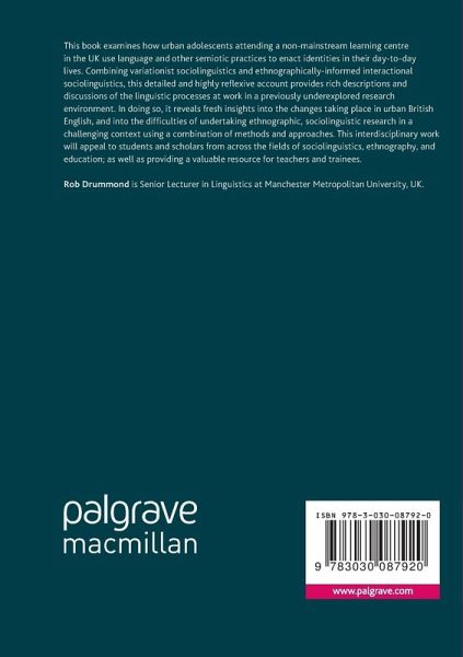 This book examines how urban adolescents attending a non-mainstream learning centre in the UK use language and other semiotic practices to enact identities in their day-to-day lives. Combining variationist sociolinguistics and ethnographically-informed interactional sociolinguistics, this detailed and highly reflexive account provides rich descriptions and discussions of the linguistic processes at work in a previously underexplored research environment. In doing so, it reveals fresh insights into the changes taking place in urban British English, and into the difficulties of undertaking ethnographic, sociolinguistic research in a challenging context using a combination of methods and approaches. This interdisciplinary work will appeal to students and scholars from across the fields of sociolinguistics, ethnography, and education; as well as providing a valuable resource for teachers and trainees.
