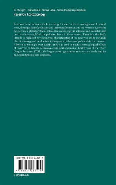 Part I. Introduction.- An Introduction to Reservoir Ecotoxicology.- Part II. Environmental Characteristics in Reservoir Ecosystems.- Characterization of Reservoir Ecosystem.- Main Sources and Distribution of Pollutants in the Reservoir.- Migration and Transformation of Pollutants in the Reservoir.- Harmful Algal Bloom in the Reservoir.- Microplastics Pollution in the Reservoir: Occurrence, Extraction, and Characterization.- Distribution of Microorganisms in the Reservoir.- Part III. Study Methods of Ecotoxicology in the Reservoir.- Ecotoxicity Test Methods of Primary Producers in the Reservoir.- Ecotoxicology Methods of Reservoir Water Using Invertebrates.- Ecotoxicology Methods of Reservoir Water Using Fish.- Ecotoxicology Methodology of Sediment Toxicity in the Reservoir.- Mesocosm Study in the Reservoir Ecosystem.- Part IV. Ecotoxicological Effects and Mechanism of Pollutants in the Reservoir.- Molecular Toxicity Mechanism of Heavy Metals in the Reservoir.- Molecular Toxicity Mechanism of Persistent Organic Pollutants (Pops) in the Reservoir.- Molecular Toxicity Mechanism of Microplastics in the Reservoir.- Molecular Toxicity Mechanism of Plasticizers in the Reservoir.- Molecular Toxicity Mechanism of PPCPs in the Reservoir.- Adverse Outcome Pathways (AOPs) of Pollutants in the Reservoir.- Invasive Alien Species Problem in the Reservoir.- Part V. Conclusions.- Final Thoughts and Concluding Remarks.