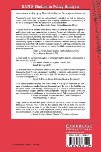 The world of intelligence has been completely transformed by the end of the Cold War and the onset of an age of information. Prior to the 1990s, US government intelligence had one principal target, the Soviet Union; a narrow set of 'customers', the political and military officials of the US government; and a limited set of information from the sources they owned, spy satellites and spies. Today, world intelligence has many targets, numerous consumers - not all of whom are American or in the government - and too much information, most of which is not owned by the U.S. government and is of widely varying reliability. In this bold and penetrating study, Gregory Treverton, former Vice Chair of the National Intelligence Council and Senate investigator, offers his insider's views on how intelligence gathering and analysis must change. He suggests why intelligence needs to be both contrarian, leaning against the conventional wisdom, and attentive to the longer term, leaning against the growing shorter time horizons of Washington policy makers. He urges that the solving of intelligence puzzles tap expertise outside government - in the academy, think tanks, and Wall Street - to make these parties colleagues and co-consumers of intelligence, befitting the changed role of government from doer to convener, mediator, and coalition-builder.