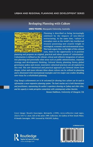 Greg Young argues that there is a need and opportunity to re-position planning and proposes a new system of 'culturisation', which is defined as the ethical, critical and reflexive integration of culture into planning. This original and practical system is put forward, taking into account cultural theory, neo-modern and post-modern planning theory.