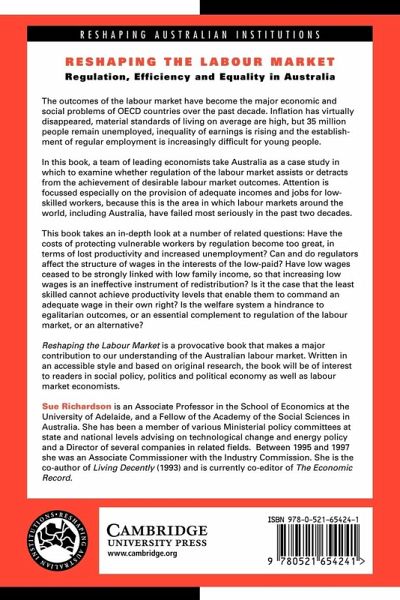 The outcomes of the labour market were the major economic and social problems of OECD countries. Inflation virtually disappeared, material standards of living on average were high, but 35 million people remained unemployed, inequality of earnings was rising and the establishment of regular employment was increasingly difficult for young people. In this 2000 book, a team of leading economists take Australia as a case study in which to examine whether regulation of the labour market assists or detracts from the achievement of desirable labour market outcomes. Attention is focused especially on the provision of adequate incomes and jobs for low-skilled workers, because this is the area in which labour markets around the world, including Australia, have failed most seriously in the past.