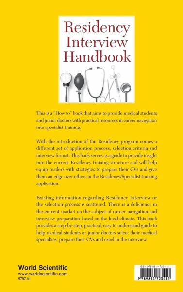 This book is a "How to" book that can help medical doctors in career navigation into specialist training in Singapore. With the introduction of the Residency program comes a different set of application process, selection criteria and interview format. This book provides invaluable insight into the current Residency training structure and will help equip readers with strategies to prepare their CVs, giving them an edge over others in the Residency interview. Existing information on Residency Interview or the Selection Process is scattered. There is a huge deficiency in the current market on the subject of interview preparation as well as detailed choice of specialties based on the local climate. This book provides a step-by-step, practical, easy to understand guide to help readers select their medical specialties, prepare their CVs and excel in interviews.