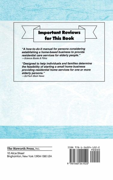 As the elderly population continues to increase, the need for suitable housing will continue to rise as well. This handbook is designed to help individuals and families determine the feasibility of starting a small home business providing residential home services for one or more elderly persons. Persons interested in starting a business of this type will find this unique book a goldmine of important information. Residential Care Services for the Elderly is a valuable decision-making tool which helps readers determine if this type of business venture is appropriate and, if so, how to start and maintain a residential care service for the elderly. Thorough coverage of background and implementation details provides potential operators with a rationale and necessary information. Numerous self-assessment and resource inventories in this practical handbook will guide readers in determining their areas of interests and competencies. Opportunities for networking among state licensing/standards agencies, funding agencies, and a listing of elder care organizations and advocacy groups adds value to this time-saving resource, ensuring a quicker and more likely success. Case studies, detailed guides, and the discussion of positive and negative aspects of being the owner of a small residential care business, based on interviews with people currently running elder care residential services, are also included. All aspects of business operations are covered in Residential Care Services for the Elderly, including sources of funding and potential incomes; emotional and financial cost/benefit factors; parameters of organizing the business including personnel, respite care workers, need for registered nurses, and food service; special needs of clients; details of financial plans with outlines and sample forms; and variables of success and failure. Graduate and undergraduate students taking classes in regard to gerontological business and long-term care related alternatives will also find this statistic-filled handbook a useful reference.