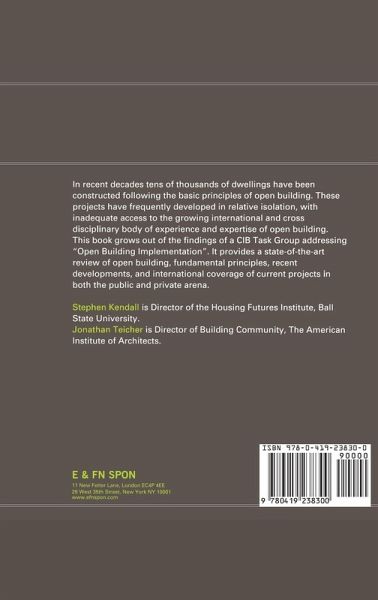 Residential Open Building, the result of a CIB Task Group 'Open Building Implementation', provides a state-of-the-art review of open building, fundamental principles, recent developments, and international coverage of current projects on both the public and private arena. Open Building is a highly flexible and economical method of building which has far reaching advantages for urban designers, architects, contractors, developers and end users.