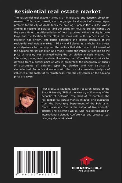 The residential real estate market is an interesting and dynamic object for research. This paper investigates the geographical aspect of a very urgent problem for the city of Minsk: today the housing supply in Minsk is the lowest among all regions of Belarus, and the prices for housing are the highest. At the same time, the differentiation of housing prices within the city is quite large and the location factor plays the main role in this process, as the research has shown. The paper considers the spatial structure of the residential real estate market in Minsk and Belarus as a whole; it analyzes price dynamics for housing and the factors that determine it. A forecast of the housing market condition was made. Minsk, the impact of location on the price of housing was analyzed using the correlation analysis method. An interesting cartographic material illustrating the differentiation of prices for dwelling from a spatial point of view is presented; the geography of supply of apartments of different types by districts and city districts is characterized. Author's calculations with the use of correlation analysis of influence of the factor of its remoteness from the city center on the housing price are given.