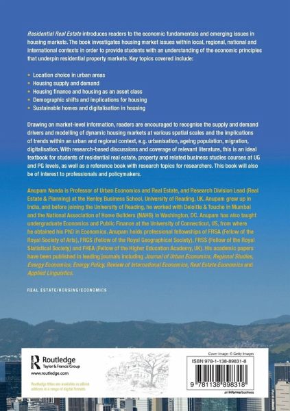1. Introduction 2. Attributes of Housing Markets 3. Economy Housing Demand and Supply 4. House Price: Measures and Estimation 5. Location Choice in Urban Areas 6. Housing Tenure Search and Mobility 7. Demographic Shifts and Housing 8. Housing Finance and the Mortgage Market 9. Residential Real Estate as an Asset Class 10. Housing with Sustainable Intelligent Places