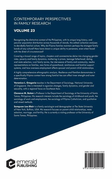 Veronica L. Gregorio teaches in the Department of Sociology, National University of Singapore. She is interested in agrarian changes, family dynamics, and gender and sexuality, with a regional focus on Southeast Asia. Clarence M. Batan is Professor in the Department of Sociology at the University of Santo Tomas, Philippines. His research interests include the sociology of childhood and youth, the sociology of work and employment, the sociology of Filipino Catholicism, and qualitative and mixed methods. Sampson Lee Blair is a family sociologist and demographer at The State University of New York, Buffalo, USA. His research focuses on parent-child relationships, mate selection, marriage, and fertility. He is currently a visiting professor at the University of Santo Tomas, Philippines.