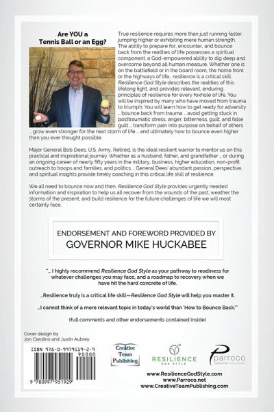 Major General (Retired) Robert F. "Bob" Dees served for 31 years in the U.S. Army in a wide variety of command and staff positions culminating in his last three assignments as Assistant Division Commander for Operations, 101st Airborne Division (Air Assault); Commander, Second Infantry Division, United States Forces Korea; and as Deputy Commanding General, V (US/GE) Corps in Europe, concurrently serving as Commander, US-Israeli Combined Task Force for Missile Defense. Commissioned a second lieutenant after graduating from West Point in 1972, he is also a graduate of the Naval Postgraduate School, the U.S. Army Command and General Staff College, the Industrial College of the Armed Forces, and Royal College of Defense Studies in London, England. Following military retirement in January 2003, Bob served as Executive Director, Defense Strategies, Microsoft Corporation; followed by leadership of a non-profit outreach to the military. While authoring The Resilience Trilogy (Resilient Warriors, Resilient Leaders, and Resilient Nations), he pioneered resilience programs for the military and beyond as Associate Vice President for Military Outreach, Adjunct Professor, and Director of the nation's first Institute for Military Resilience at Liberty University. He also served for five years as "Honorary Colonel" of the Rakkasan Regiment (187th Infantry). Most recently Bob served as National Security Advisor and Campaign Chairman, Carson for President 2016. Bob provides commentary on national security and resilience topics for numerous national media outlets, as well as speaking for numerous churches, military bases, and business organizations across America. He was featured as one of 30 "Master Leaders" in America by noted author George Barna. Bob's primary endeavor now is pioneering a national "Resilience God Style" campaign to restore faith-based resilience at individual, leader, and national levels; to include 2018 publication of Resilience God Style, Resilience God Style Study Guide, as well as an associated video series and training game.