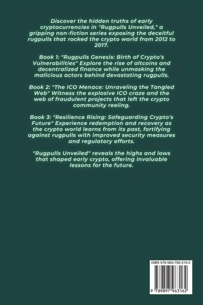 Embark on an exhilarating journey through the dynamic world of cryptocurrencies and blockchain technology with "Resilience Rising: Safeguarding Crypto's Future." Delve into riveting case studies of real-life rugpull incidents that sent shockwaves through the crypto community, unraveling the intricate web of deception and showcasing the industry's unparalleled ability to rise stronger from adversity. As you flip through the pages, you'll witness the remarkable stories of triumph and tenacity, where determined individuals, ingenious developers, and passionate investors rallied together to thwart the schemes of cunning scammers. Be captivated by the lessons learned from the past, the strategies devised to ensure transparency and accountability, and the transformative power of decentralized governance. "Resilience Rising" is your essential guide to understanding the vital importance of investor education and protection. Explore how cutting-edge security measures fortify the crypto landscape against hacks and malicious attacks, ensuring that your investments remain safe and sound. Navigate the labyrinth of evolving regulations and compliance frameworks, unraveling the delicate balance between preserving freedom and embracing oversight. But that's not all. Peer into the ethical debates that echo through the corridors of the blockchain realm, where privacy rights, regulatory obligations, and the enigmatic "code is law" principle collide. Discover how a global community unites to champion innovation, forging a path towards a brighter, more collaborative future for cryptocurrencies and blockchain. This book isn't just a captivating read-it's your compass in the uncharted waters of crypto investments. Whether you're a seasoned trader or a curious novice, "Resilience Rising" arms you with the knowledge, insights, and foresight you need to navigate this exhilarating landscape. Don't invest a dime without arming yourself with the wisdom of those who've weathered the storm. Get ready to seize the crypto revolution by the horns and embark on a transformative journey towards safeguarding Crypto's Future.