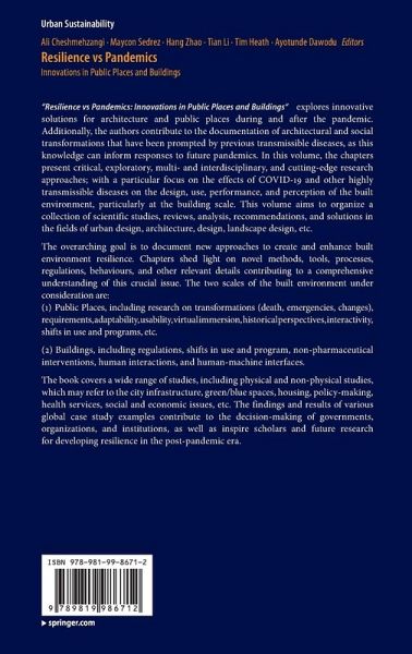 "Resilience vs Pandemics: Innovations in Public Places and Buildings" explores innovative solutions for architecture and public places during and after the pandemic. Additionally, the authors contribute to the documentation of architectural and social transformations that have been prompted by previous transmissible diseases, as this knowledge can inform responses to future pandemics. In this volume, the chapters present critical, exploratory, multi- and interdisciplinary, and cutting-edge research approaches; with a particular focus on the effects of COVID-19 and other highly transmissible diseases on the design, use, performance, and perception of the built environment, particularly at the building scale. This volume aims to organize a collection of scientific studies, reviews, analysis, recommendations, and solutions in the fields of urban design, architecture, design, landscape design, etc.