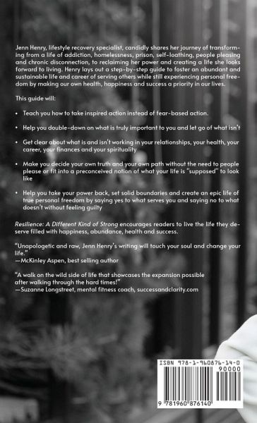 Jenn Henry, lifestyle recovery specialist, candidly shares her journey of transforming from a life of addiction, homelessness, prison, self-loathing, people pleasing and chronic disconnection, to reclaiming her power and creating a life she looks forward to living. Henry lays out a step-by-step guide to foster an abundant and sustainable life and career of serving others while still experiencing personal freedom by making our own health, happiness and success a priority in our lives. This guide will:Teach you how to take inspired action instead of fear-based action Help you double down on what is truly important to you and let go of what isn't Get clear about what is and isn't working in your relationships, your health, your career, your finances and your spirituality Make you decide your own truth and your own path without the need to people please or fit into a preconceived notion of what your life is "supposed" to look like Help you take your power back, set solid boundaries and create an epic life of true personal freedom by saying yes to what serves you and saying no to what doesn't without feeling guilty Resilience: A Different Kind of Strong encourages readers to live the life they deserve filled with happiness, abundance, health and success.