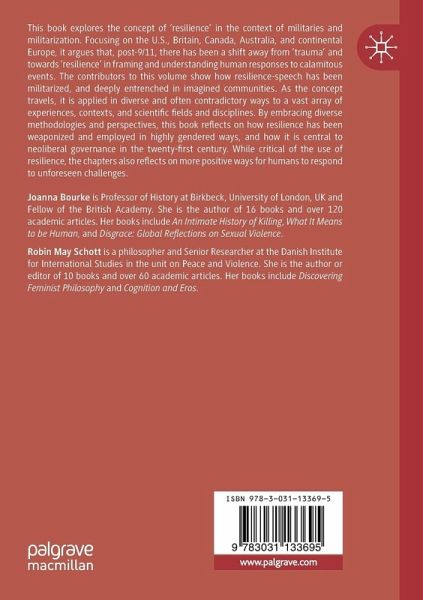 This book explores the concept of 'resilience' in the context of militaries and militarization. Focusing on the U.S., Britain, Canada, Australia, and continental Europe, it argues that, post-9/11, there has been a shift away from 'trauma' and towards 'resilience' in framing and understanding human responses to calamitous events. The contributors to this volume show how resilience-speech has been militarized, and deeply entrenched in imagined communities. As the concept travels, it is applied in diverse and often contradictory ways to a vast array of experiences, contexts, and scientific fields and disciplines. By embracing diverse methodologies and perspectives, this book reflects on how resilience has been weaponized and employed in highly gendered ways, and how it is central to neoliberal governance in the twenty-first century. While critical of the use of resilience, the chapters also reflect on more positive ways for humans to respond to unforeseen challenges.