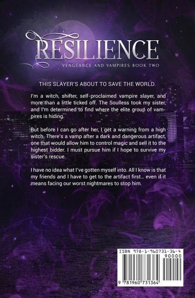 This slayer's about to save the world. I'm a witch, shifter, self-proclaimed vampire slayer, and more than a little ticked off. The Soulless took my sister, and I'm determined to find where the elite group of vampires is hiding. But before I can go after her, I get a warning from a high witch. There's a vamp after a dark and dangerous artifact, one that would allow him to control magic and sell it to the highest bidder. I must pursue him if I hope to survive my sister's rescue. I have no idea what I've gotten myself into. All I know is that my friends and I have to get to the artifact first... even if it means facing our worst nightmares to stop him.