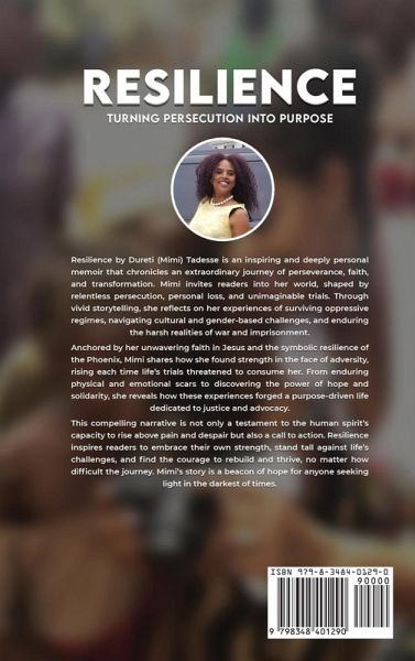 Resilience by Dureti (Mimi) Tadesse is an inspiring and deeply personal memoir that chronicles an extraordinary journey of perseverance, faith, and transformation. Mimi invites readers into her world, shaped by relentless persecution, personal loss, and unimaginable trials. Through vivid storytelling, she reflects on her experiences of surviving oppressive regimes, navigating cultural and gender-based challenges, and enduring the harsh realities of war and imprisonment. Anchored by her unwavering faith in Jesus and the symbolic resilience of the Phoenix, Mimi shares how she found strength in the face of adversity, rising each time life's trials threatened to consume her. From enduring physical and emotional scars to discovering the power of hope and solidarity, she reveals how these experiences forged a purpose-driven life dedicated to justice and advocacy. This compelling narrative is not only a testament to the human spirit's capacity to rise above pain and despair but also a call to action. Resilience inspires readers to embrace their own strength, stand tall against life's challenges, and find the courage to rebuild and thrive, no matter how difficult the journey. Mimi's story is a beacon of hope for anyone seeking light in the darkest of times.