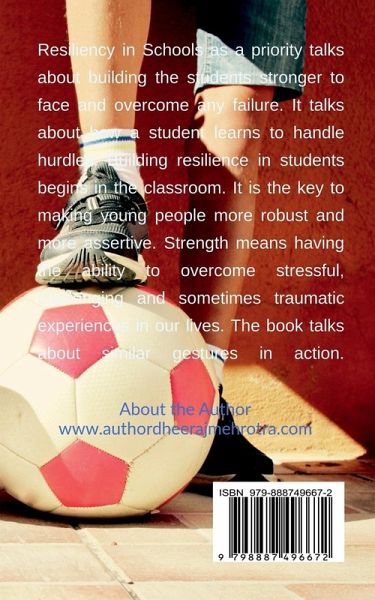 Resiliency in Schools as a priority talks about building the students stronger to face and overcome any failure. It talks about how a student learns to handle hurdles. Building resilience in students begins in the classroom. It is the key to making young people more robust and more assertive. Strength means having the ability to overcome stressful, challenging and sometimes traumatic experiences in our lives. The book talks about similar gestures in action.