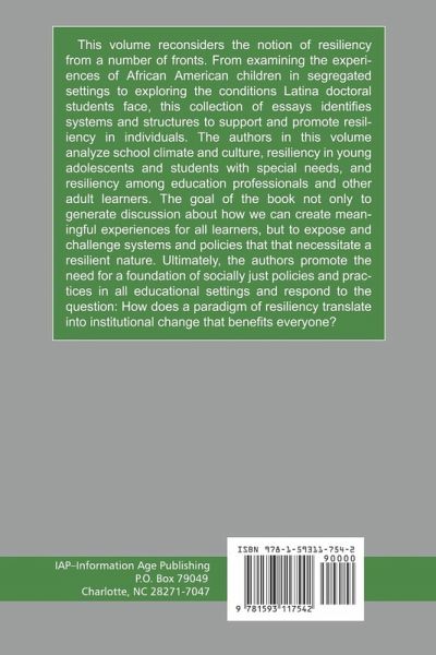 The goal of this book is to generate discussion not only about how we can create meaningful educational experiences for all learners, but to challenge systems that necessitate a resilient nature. Ultimately, the authors promote the need for a foundation of socially just policies and practices in all educational settings and respond to the question: How does a paradigm of resiliency translate into institutional change that benefits everyone?