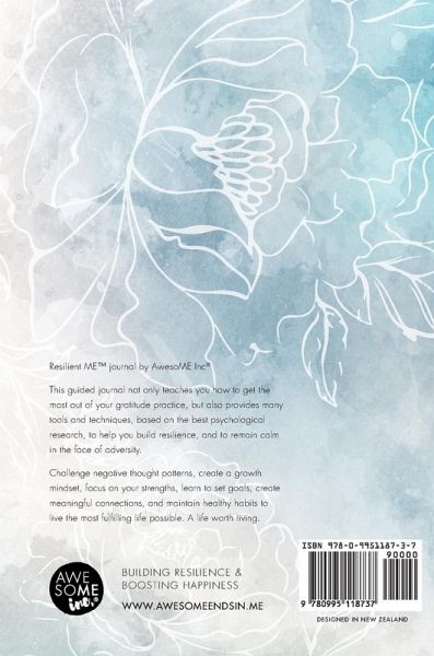 The Resilient ME® journal will help you to build resilience and boost happiness so you can create a life worth living, because everyone deserves to live a fulfilling, content and happy life. Many people find that making a choice to practice gratitude is one of the most useful things they can do to build resilience. It can help you bounce back from stressful events, and deal with adversity, by helping you to focus on the good things already in your life. It also helps to stop you keeping your emotions and thoughts on the inside. The Resilient ME® gratitude journal by AwesoME Inc® not only teaches you how to get the most out of your gratitude practice, but also provides an insight into many tools and techniques, based on the best psychological research, to help you build resilience. By challenging negative thought patterns, creating a growth mindset, focusing on your strengths, setting goals, creating meaningful connections, and maintaining healthy habits you can live the most fulfilling life possible.