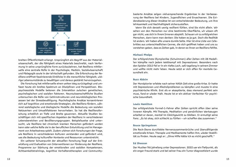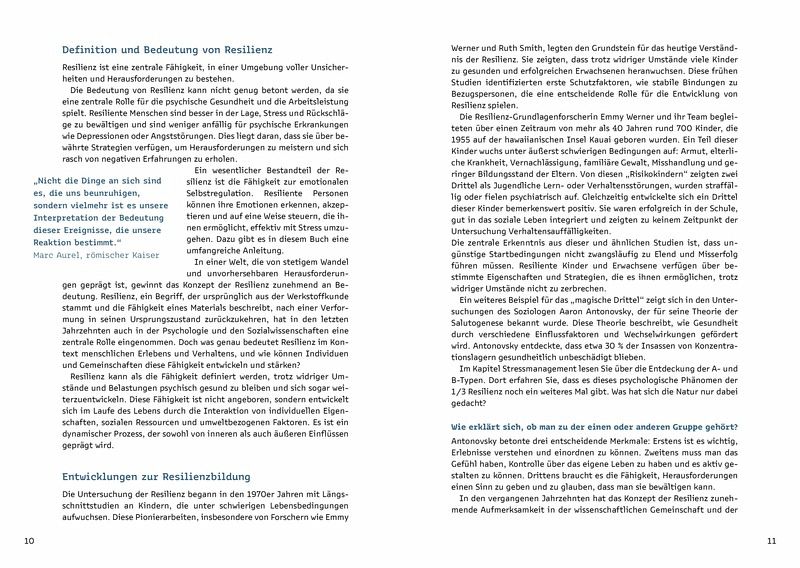 Im Bereich der Einführung wird ausführlich darübergeschrieben, was Resilienz eigentlich bedeutet und welche Methoden es gibt.