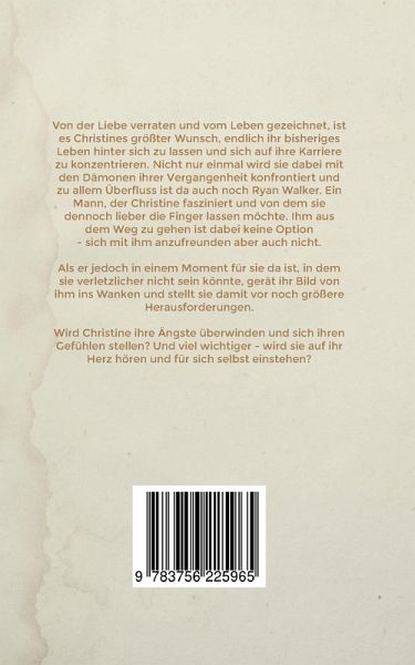 Von der Liebe verraten und vom Leben gezeichnet, ist es Christines größter Wunsch, endlich ihr bisheriges Leben hinter sich zu lassen und sich auf ihre Karriere zu konzentrieren. Nicht nur einmal wird sie dabei mit den Dämonen ihrer Vergangenheit konfrontiert und zu allem Überfluss ist da auch noch Ryan Walker. Ein Mann, der Christine fasziniert und von dem sie dennoch lieber die Finger lassen möchte. Ihm aus dem Weg zu gehen ist dabei keine Option - sich mit ihm anzufreunden aber auch nicht.Als er jedoch in einem Moment für sie da ist, in dem sie verletzlicher nicht sein könnte, gerät ihr Bild von ihm ins Wanken und stellt sie damit vor noch größere Herausforderungen.Wird Christine ihre Ängste überwinden und sich ihren Gefühlen stellen? Und viel wichtiger - wird sie auf ihr Herz hören und für sich selbst einstehen?