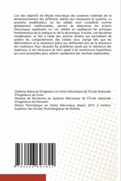 L'un des objectifs de l'étude mécanique des systèmes matériels est le dimensionnement des différents solides qui composent le système. La première modélisation, où les solides sont considérés comme globalement indéformables, permet de déterminer les actions mécaniques appliquées sur ces solides en appliquant les principes fondamentaux de la statique ou de la dynamique. Ensuite, une deuxième modélisation se fait à l'aide des poutres droites qui permettent de prédire les comportements des solides sous charge tels que les déformations et la résistance grâce aux différentes lois de la résistance des matériaux. Pour résoudre les problèmes posés par la résistance des matériaux, il est nécessaire de faire appel à de nombreuses hypothèses qui sont essentielles pour obtenir rapidement des résultats exploitables.