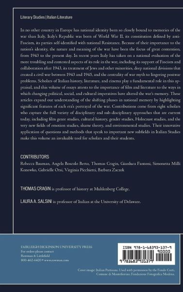 In no other country in Europe has national identity been so closely bound to memories of the war. Italy's Republic was born of World War II, its constitution defined by anti-Fascism, its parties self-identified with national Resistance. Because of their importance to the nation's identity, the nature and meaning of the war have been the focus of great contention, from 1943 to the present day. In recent years Italy has taken on a national evaluation of the more troubling and contested aspects of its role in the war, including its support of Fascism and collaboration after 1943, its treatment of Jews and other minorities, deep national divisions that created a civil war between 1943 and 1945, and the centrality of war myth to lingering postwar problems. Scholars of Italian history, literature, and cinema play a fundamental role in this appraisal, and this volume of essays attests to the importance of film and literature to the ways in which changing political, social and cultural imperatives have altered the war's memory. These articles expand our understanding of the shifting phases in national memory by highlighting significant features of each era's portrayal of the war. Contributions come from eight scholars who capture the full variety of disciplinary and sub-disciplinary approaches that are current today, including film genre studies, cultural history, gender studies, Holocaust studies, and the very new fields of emotion studies, shame theory, and environmental studies. Their innovative application of questions and methods that speak to important new subfields in Italian Studies make this volume an invaluable tool for scholars and their students.