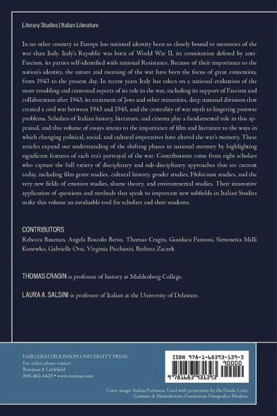 In no other country in Europe has national identity been so closely bound to memories of the war. Italy's Republic was born of World War II, its constitution defined by anti-Fascism, its parties self-identified with national Resistance. Because of their importance to the nation's identity, the nature and meaning of the war have been the focus of great contention, from 1943 to the present day. In recent years Italy has taken on a national evaluation of the more troubling and contested aspects of its role in the war, including its support of Fascism and collaboration after 1943, its treatment of Jews and other minorities, deep national divisions that created a civil war between 1943 and 1945, and the centrality of war myth to lingering postwar problems. Scholars of Italian history, literature, and cinema play a fundamental role in this appraisal, and this volume of essays attests to the importance of film and literature to the ways in which changing political, social and cultural imperatives have altered the war's memory. These articles expand our understanding of the shifting phases in national memory by highlighting significant features of each era's portrayal of the war. Contributions come from eight scholars who capture the full variety of disciplinary and sub-disciplinary approaches that are current today, including film genre studies, cultural history, gender studies, Holocaust studies, and the very new fields of emotion studies, shame theory, and environmental studies. Their innovative application of questions and methods that speak to important new subfields in Italian Studies make this volume an invaluable tool for scholars and their students.