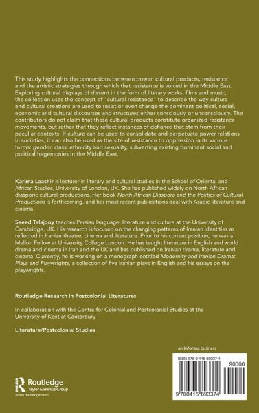 This book highlights the connections between power, resistance and cultural products, and the artistic strategies through which resistance is voiced in the Middle East, exploring cultural displays of dissent in the form of literary works, films, and music. The collection uses the concept of "cultural resistance" to describe the way culture and cultural creations are used to resist or even change the dominant political, social, economic, and cultural discourses and structures either consciously or unconsciously. The contributors do not claim that these cultural products constitute organized resistance movements, but rather that they reflect instances of defiance that stem from their peculiar contexts. If culture can be used to consolidate and perpetuate power relations in societies, it can also be used as the site of resistance to oppression in its various forms: gender, class, ethnicity, and sexuality, subverting existing dominant social and political hegemonies in the Middle East.