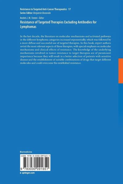In the last decade, the literature on molecular mechanisms and activated pathways in the different lymphoma categories increased exponentially, which was followed by a more diffuse and successful use of targeted therapies. In this book, expert authors revisit the most relevant aspects of these therapies, with special emphasis on molecular mechanisms and clinical effects of resistance. The knowledge of the underlying mechanisms involved in tumor resistance to target therapies is of paramount importance because they will result in a better selection of patients with sensitive disease and the establishment of suitable combinations of drugs that target different molecules and could overcome the established resistance.