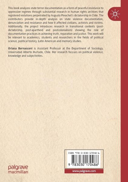 This book analyzes state terror documentation as a form of peaceful resistance to oppressive regimes through substantial research in human rights archives that registered violations perpetrated by Augusto Pinochet's dictatorship in Chile. The contributors provide in-depth analysis on state violence documentation, denunciation and resistance and how it affected civilians, activists and victims. Additionally, the project introduces research in transitional contexts (post-dictatorship, post-apartheid and post-colonialism) showing the role of documentation practices in achieving truth, reparation and justice. This work will be relevant to academics, students and researchers in the fields of political science, political history, Latin American and memory studies.