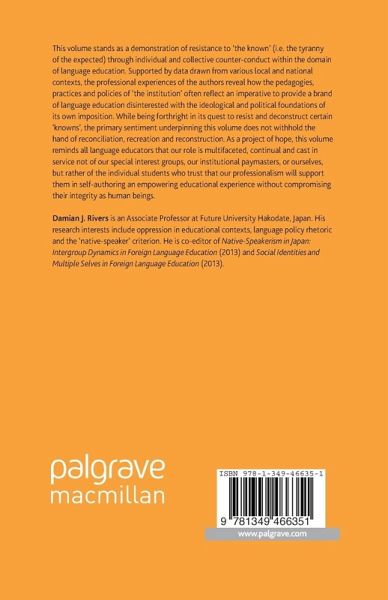 This volume stands as a demonstration of resistance to 'the known' (i.e. the tyranny of the expected) through individual and collective counter-conduct within the domain of language education. Supported by data drawn from various local and national contexts, the book challenges the pedagogies, practices, and policies of 'the institution'.