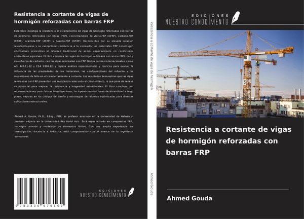 Este libro investiga la resistencia al cizallamiento de vigas de hormigón reforzadas con barras de polímeros reforzados con fibras (FRP), concretamente de vidrio-FRP (GFRP), carbono-FRP (CFRP), aramida-FRP (AFRP) y basalto-FRP (BFRP). Reconocidos por su elevada relación resistencia-peso y su excepcional resistencia a la corrosión, los materiales FRP constituyen alternativas sostenibles al refuerzo tradicional de acero, especialmente en condiciones ambientales agresivas. El libro compara las vigas de hormigón reforzado con acero (RC), con y sin refuerzo de cortante, con las vigas reforzadas con FRP. Revisa normas internacionales, como ACI 440.11-22 y CSA S806-12, y repasa análisis experimentales y teóricos para evaluar la influencia de las propiedades de los materiales, las configuraciones del refuerzo y los mecanismos de fallo en el comportamiento a cortante. Los resultados demuestran que las vigas reforzadas con FRP presentan una resistencia adecuada al cizallamiento, lo que pone de relieve su potencial para mejorar la resistencia y longevidad estructurales. El libro concluye con recomendaciones para futuras investigaciones, incluyendo evaluaciones de durabilidad a largo plazo, mejoras en los códigos de diseño y estrategias de refuerzo optimizadas para diversas aplicaciones estructurales.