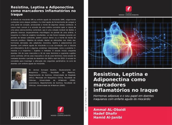 O enfarte do miocárdio (IM) ou enfarte agudo do miocárdio (IAM), vulgarmente conhecido como ataque cardíaco, é a interrupção do fornecimento de sangue a uma parte do coração, provocando a morte de algumas células cardíacas. A causa mais comum é a oclusão de uma artéria coronária após a rutura de uma placa aterosclerótica vulnerável, que é uma coleção instável de lípidos e glóbulos brancos (especialmente macrófagos) na parede de uma artéria. A isquemia e a falta de oxigénio resultantes, se não forem tratadas durante um período de tempo suficiente, podem causar danos ou a morte do tecido do músculo cardíaco. Objetivo do estudo: Avaliar as alterações nos níveis das hormonas derivadas dos adipócitos (resistina, leptina e adiponectina) em doentes com enfarte agudo do miocárdio e a sua correlação com a citocina pró-inflamatória (IL-6) e algumas proteínas relacionadas como a proteína C-reactiva e a troponina I. Sujeitos e métodos O estudo incluiu cinquenta doentes (34 do sexo masculino e 16 do sexo feminino) e quarenta sujeitos como controlos (24 do sexo masculino e 16 do sexo feminino). Este estudo foi realizado durante o período de dezembro de 2009 a abril de 2010. O estudo foi concebido para investigar a alteração dos seguintes parâmetros no soro de doentes com enfarte agudo do miocárdio.