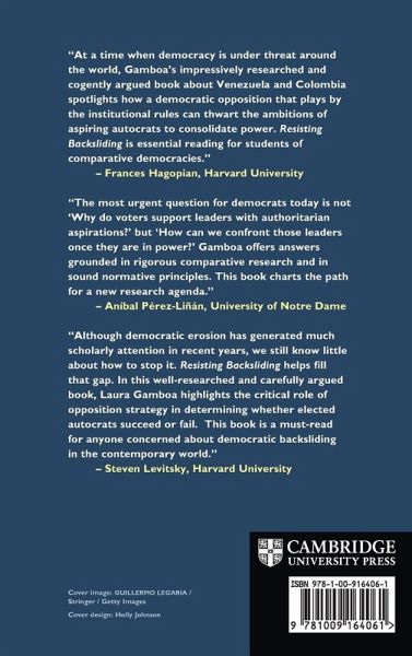 "In the past two decades, democratically elected executives across the world have used their popularity to push for legislation that, over time, destroys systems of checks and balances, hinders free and fair elections, and undermines political rights and civil liberties. Using and abusing institutions and institutional reform, some executives have transformed their countries' democracies into competitive authoritarian regimes. Others, however, have failed to erode democracy. What explains these different outcomes? Resisting Backsliding answers this question. With a focus on the cases of Hugo Châavez in Venezuela and Alvaro Uribe in Colombia, the book shows that the strategies and goals of the opposition are key to understanding why some executives successfully erode democracy and others do not. By highlighting the role of the opposition, this book emphasizes the importance of agency for understanding democratic backsliding and shows that even weak oppositions can defeat strong potential autocrats"--